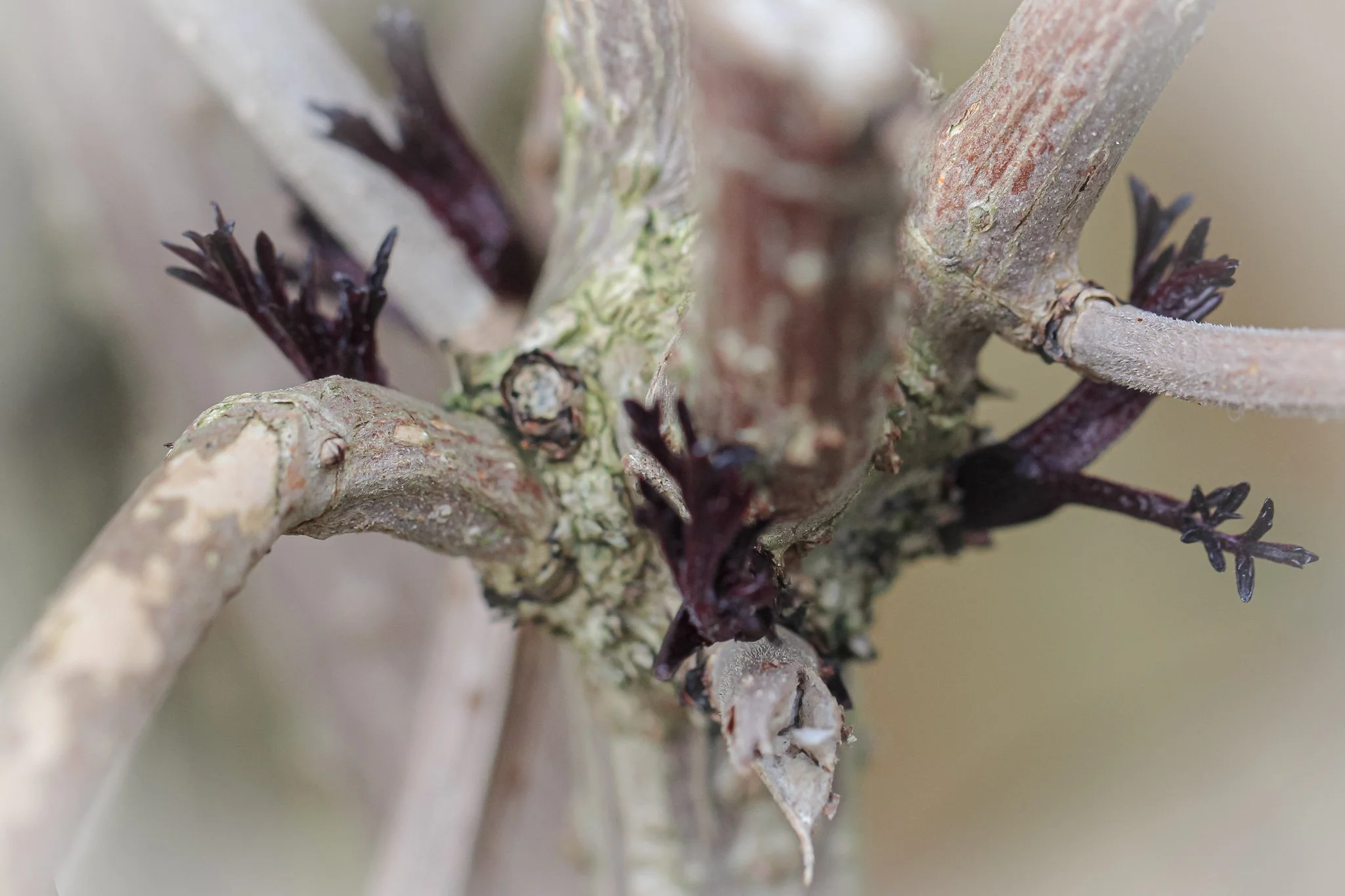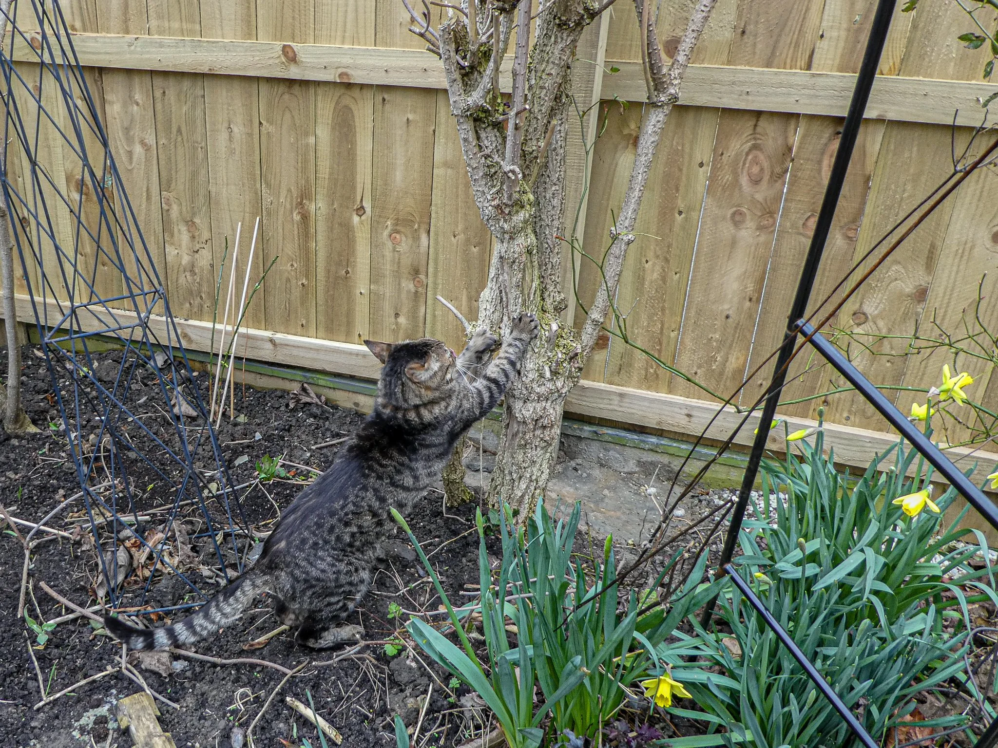 It was cool, windy and liable to be wet by the time I came home from work today. Ben sprinted to the back of the garden to do his business and to then sharpen his claws on the black elder. I did wonder whether its his claw work that has made the old tree look the way it does as well as its age. It is another ‘original’ in the Magic Garden that I planted when the house was first built 18 years ago. It is just pushing out its foliage now as another sign of spring approaching.