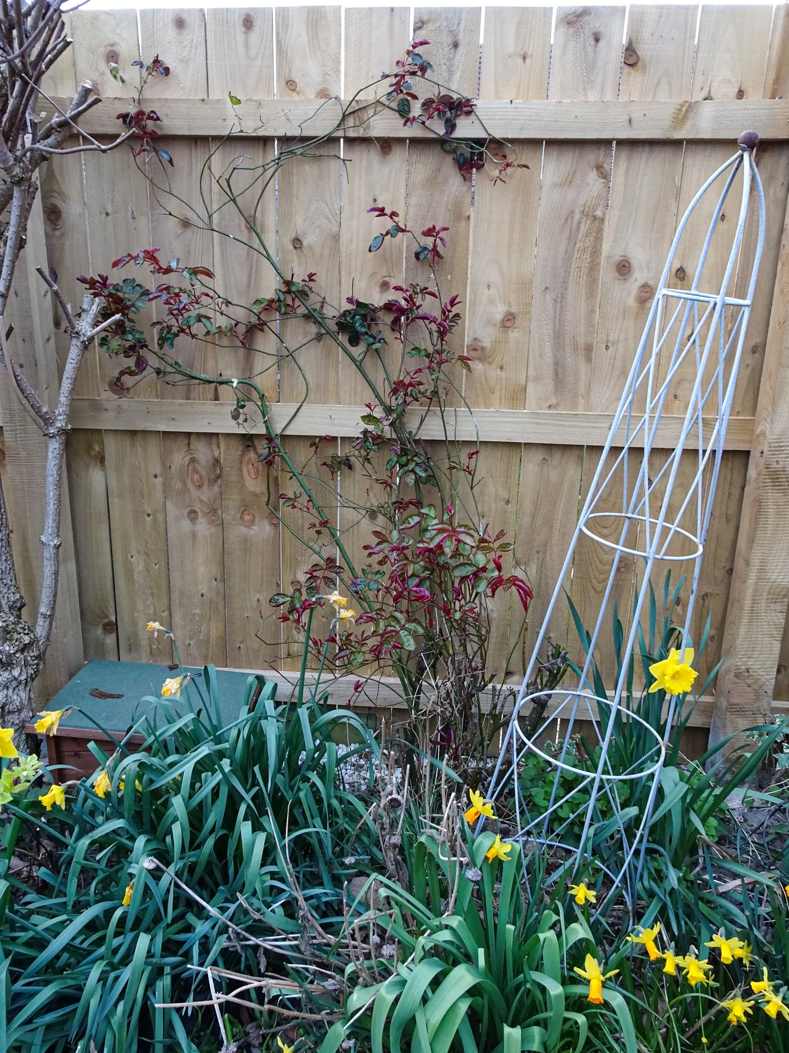 On the way home I was thinking about tasks for the weekend. I need to make a decision about painting the fence. So far I have not done much about securing the climbers except for this rose. I have forgotten what it is called but it is reasonably vigorous & produces lovely pink roses from June to December. I’ve pruned it harder than usual & tied in to produce horizontal stems which encourages flowering.