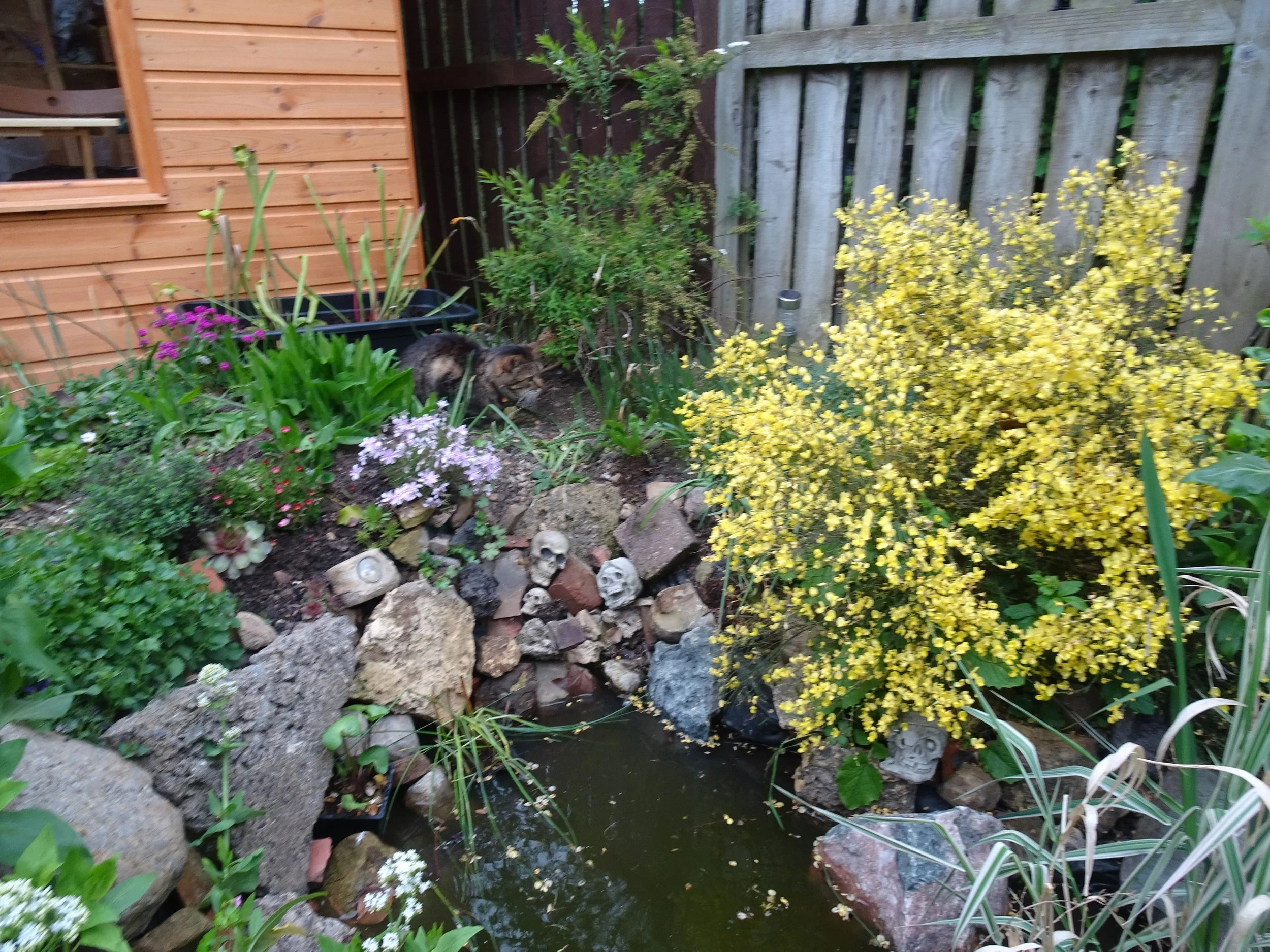 The problem with the position is that there is only a relatively back space between the pond and the fence. I had started to grow a clematis up this space which I have lost with the fence! The magnificent broom though looks as if it has survived the experience so I hope to have it back in bloom again this year.
