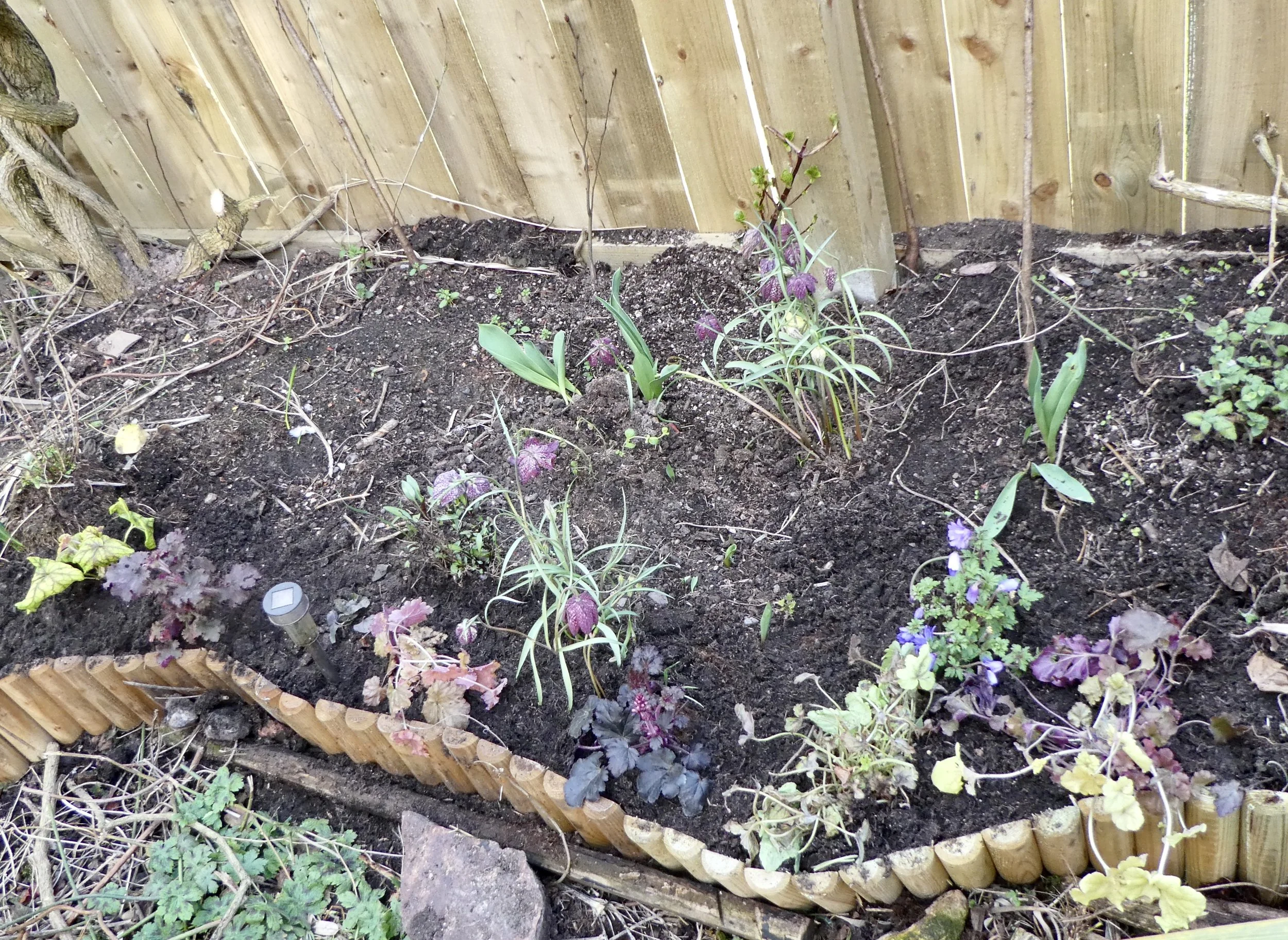 I have had a busy time in the Magic Garden today planting out some of the heuchera that I have been amassing before they take over the dining room floor.
