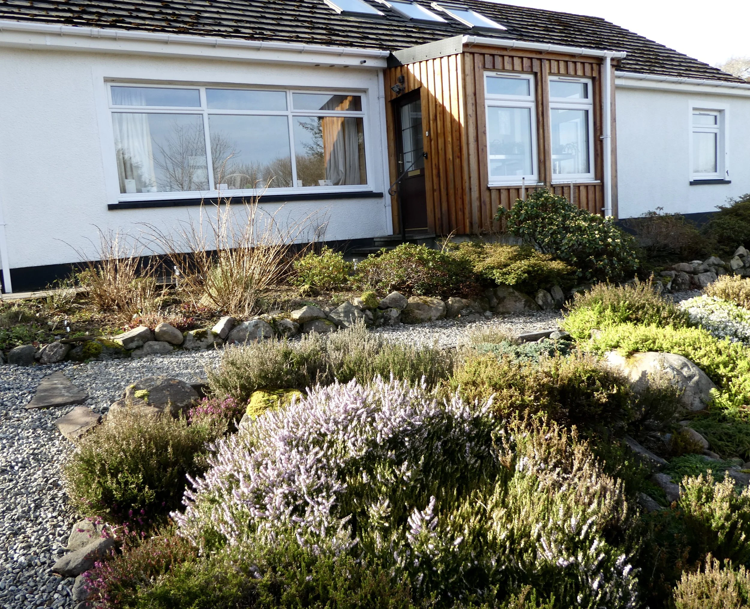 Down in front of the house is.a a large heather & juniper bed. My father deliberately chose heathers to try & give all year round colour. He had it divided up by prostrate juniper creating the impression of water flowing.