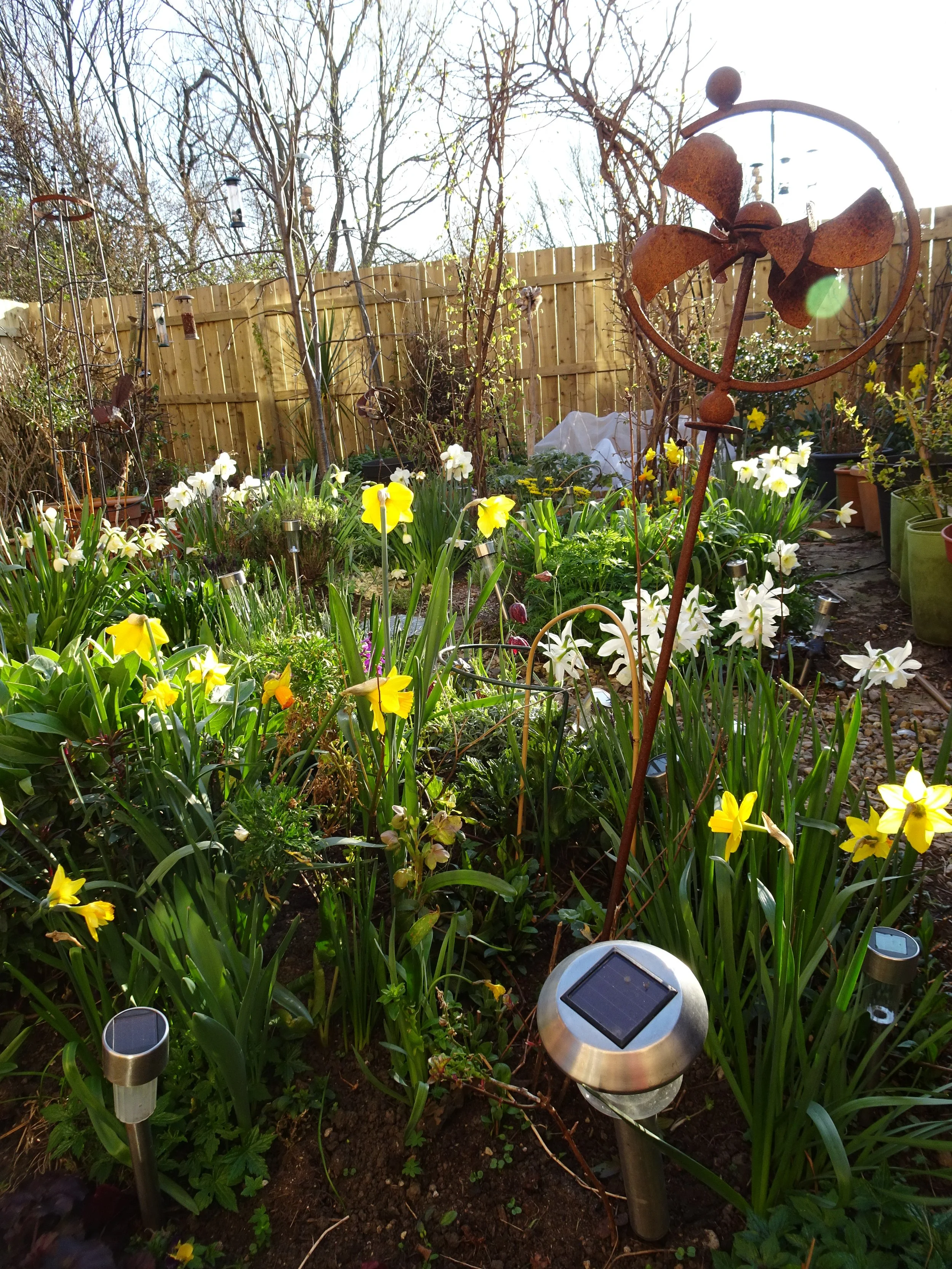 My Mum used to get upset if we sent her cards that said ‘Mother’s day’ as she insists on what she considers its proper name of Mothering Sunday, the middle Sunday in Lent when you get a day off ‘fasting’. I used face-time today to show her the Magic Garden & she was delighted to see it in the afternoon sunshine with its collection of daffodils and the cat.
