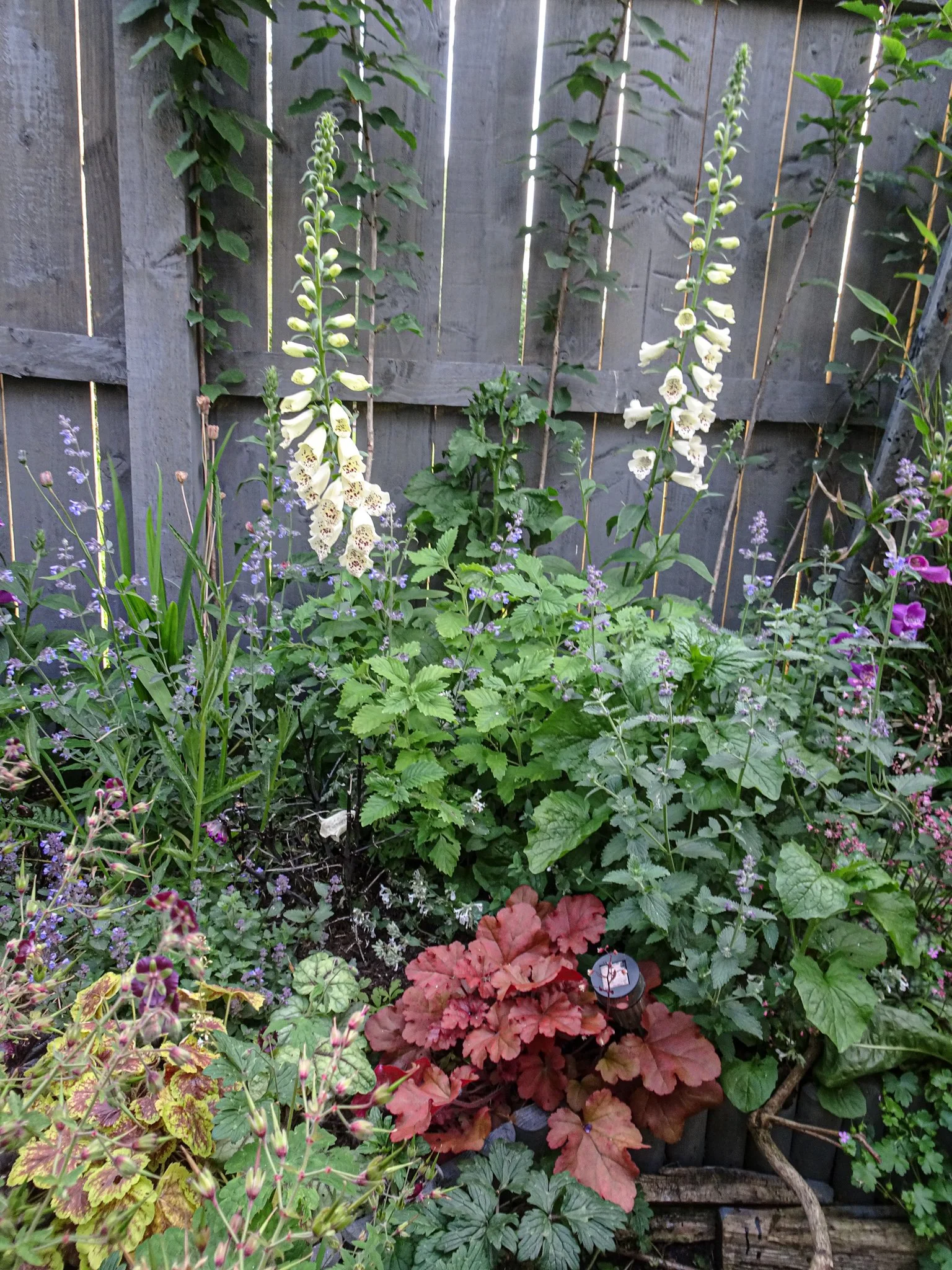 I did a bit more tying in of the blackberry and gooseberry and then a thorough watering of the whole of that back corner. I am really pleased with how it is coming on and particularly proud of the foxgloves.