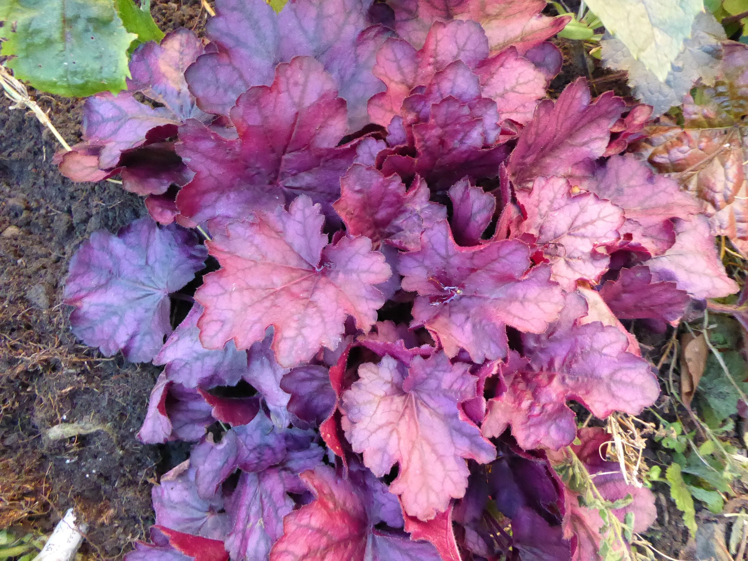 I had a little time in the Magic Garden this afternoon. It is still windy and although not exactly cold. I dug out a stump of hazel from the east quadrant before planting out the beautiful heuchera in its place