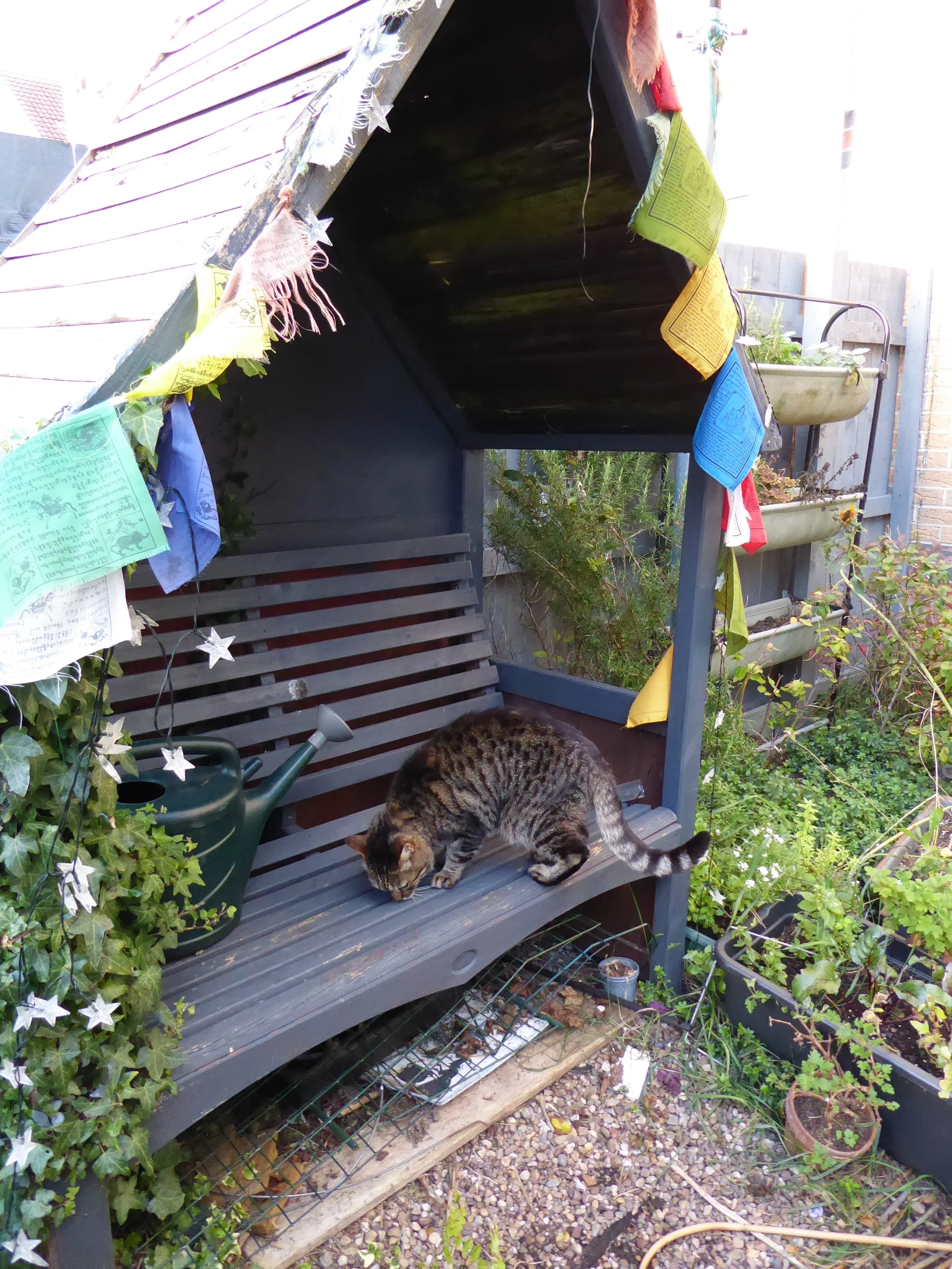 Ben was less than enthusiastic about joining me but is still enjoying the bower seat and did spend a couple of hours outdoors today