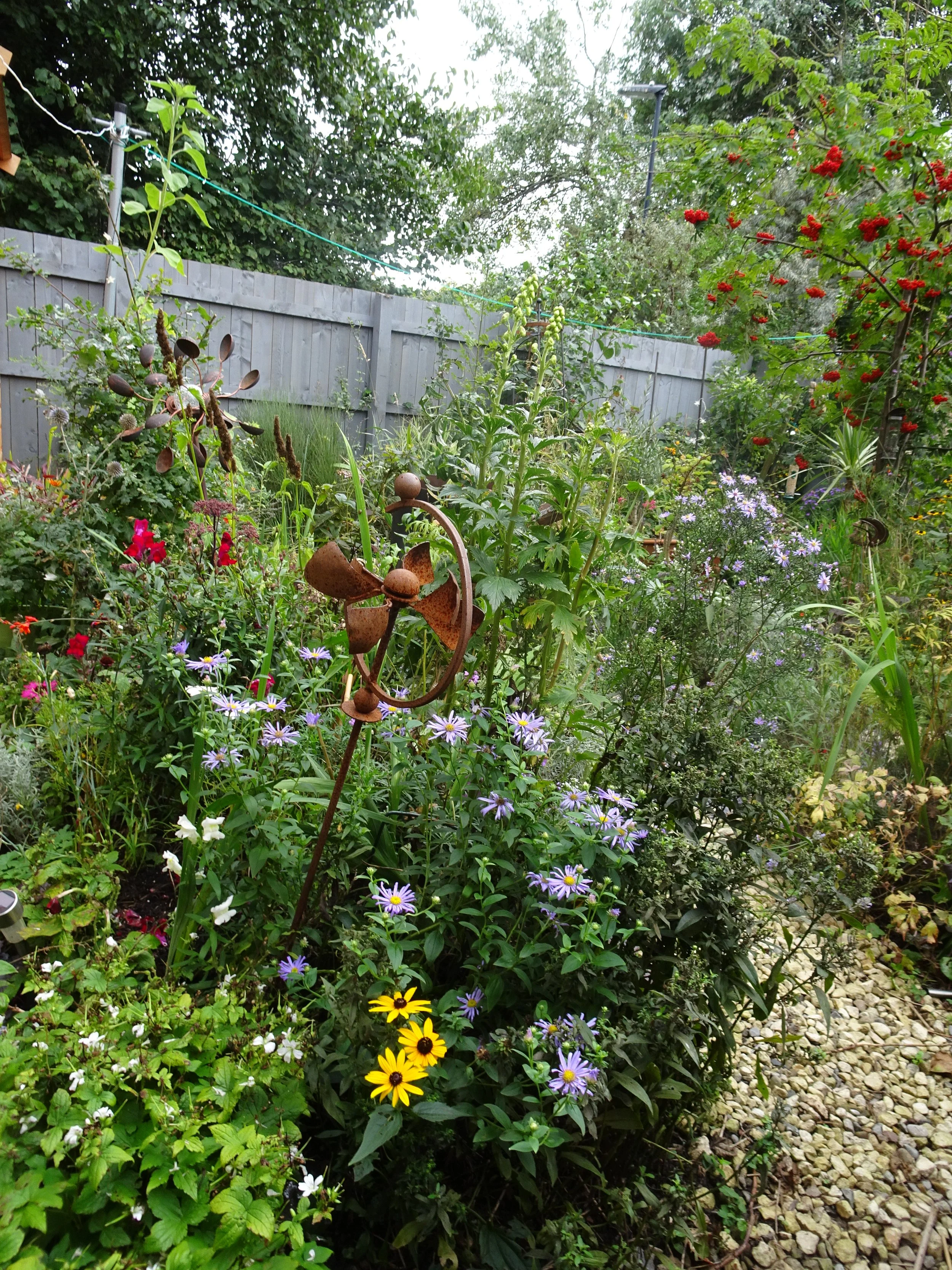 The asters are providing fodder for the bees and delight for me. Hopefully they will continue well into the autumn as a little focus of flowers in the north quadrant