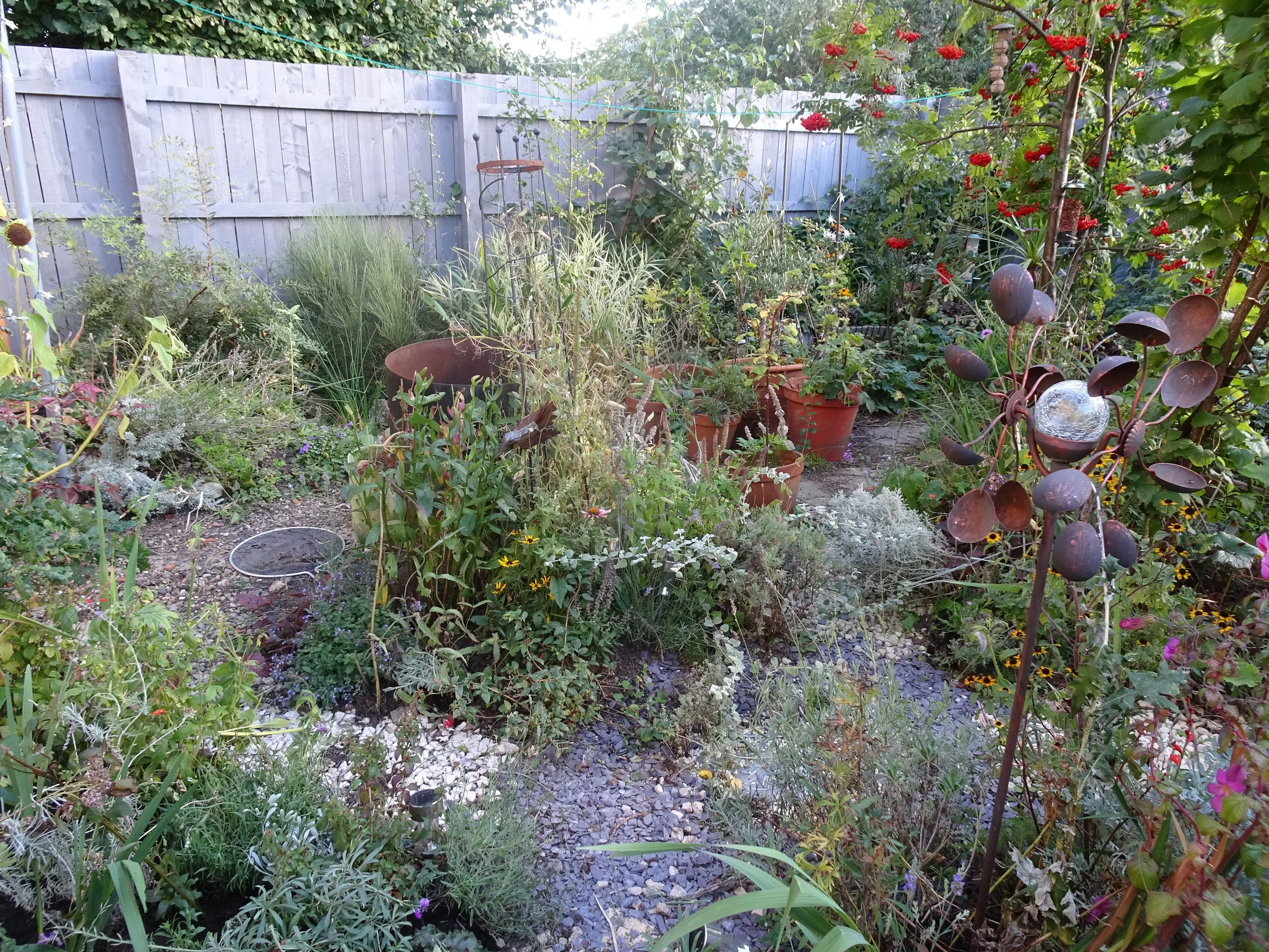 I’ve carried on working at the north quadrant and did a bit of instant gardening with new plants - a heuchera and calcephalus at the front and a nepeta in the middle. Along the path between it and the east quadrant I added a silver convolvulus and a santolina as well as a new fuchsia
