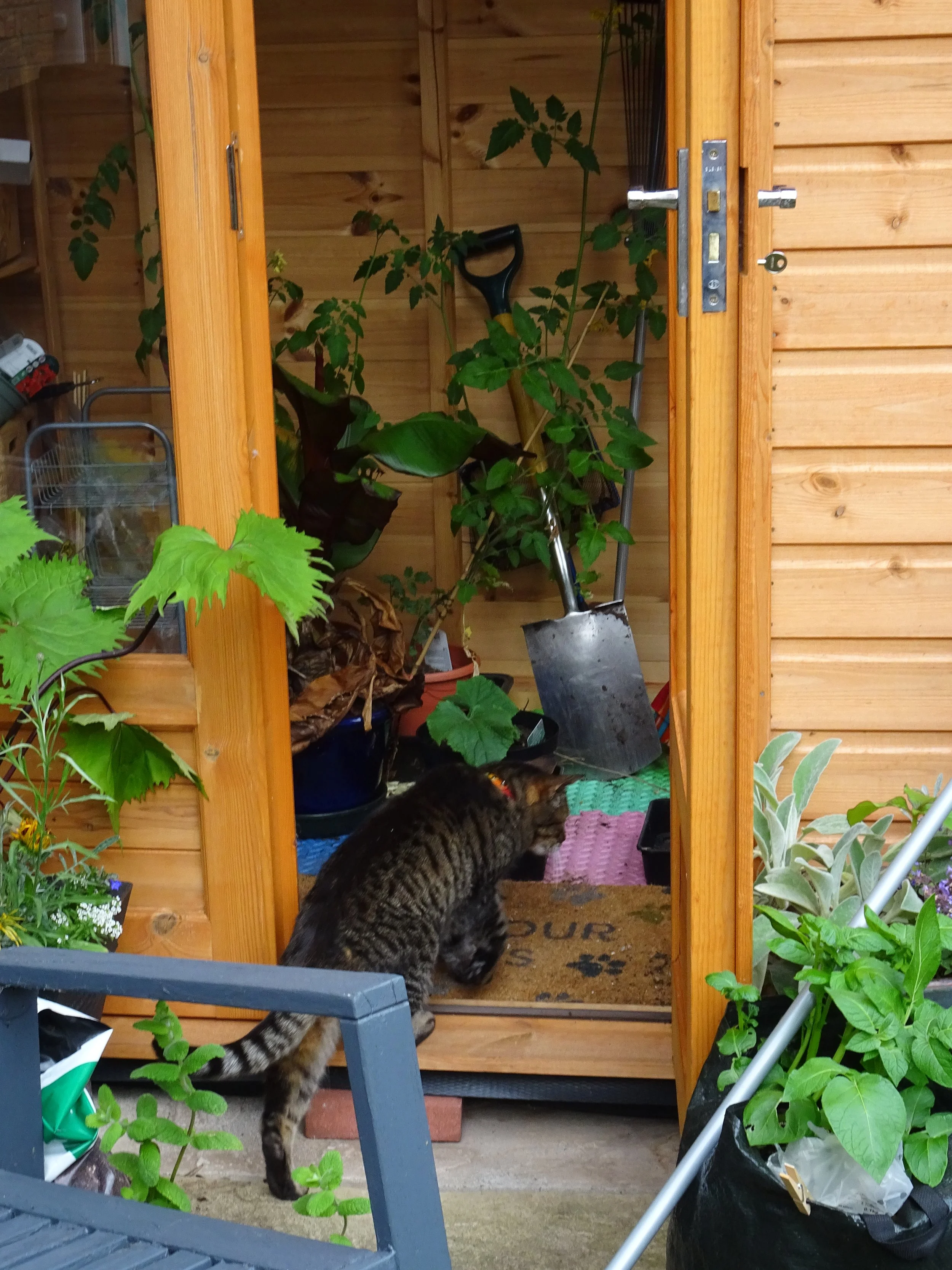 The tomatoes are turning into triffids in the summerhouse although the cucumbers are not yet following suit. Ben is disapproving of this use of his space. The banana will come outside soon but its still too windy.