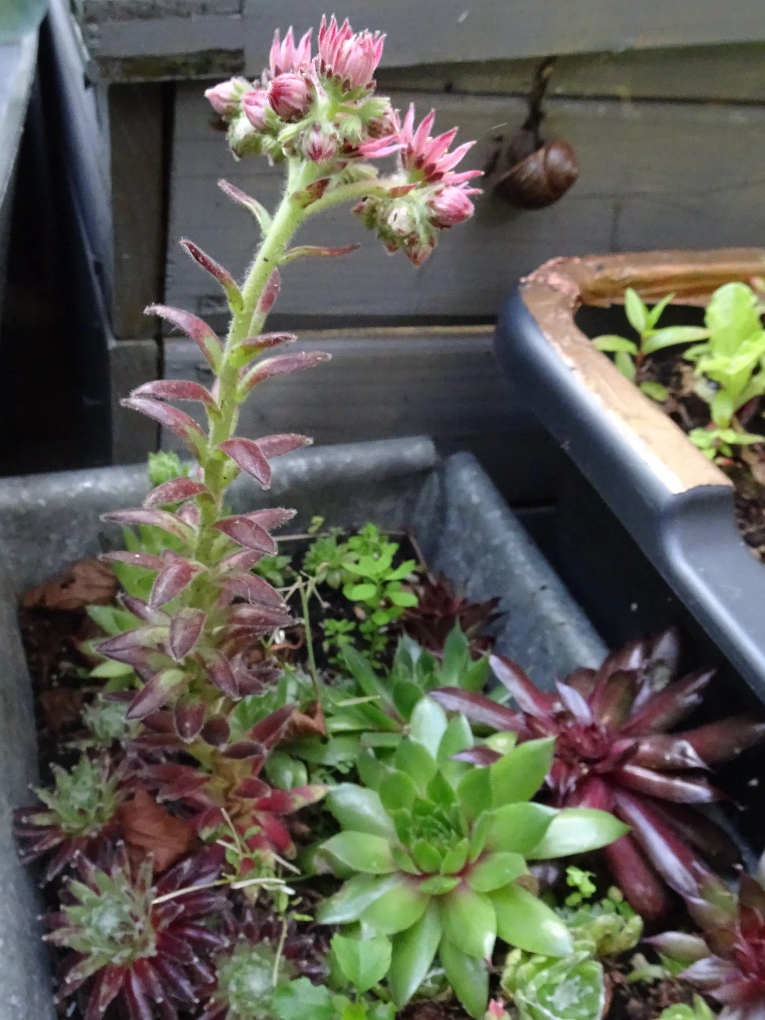 In my ‘alpine’ troughs my sempervivum are blooming - much more exotic in flower than I expected. I think I will try taking ‘cuttings’ again from these - some of the wee rosettes should take I think with a new crop of flowers next year.