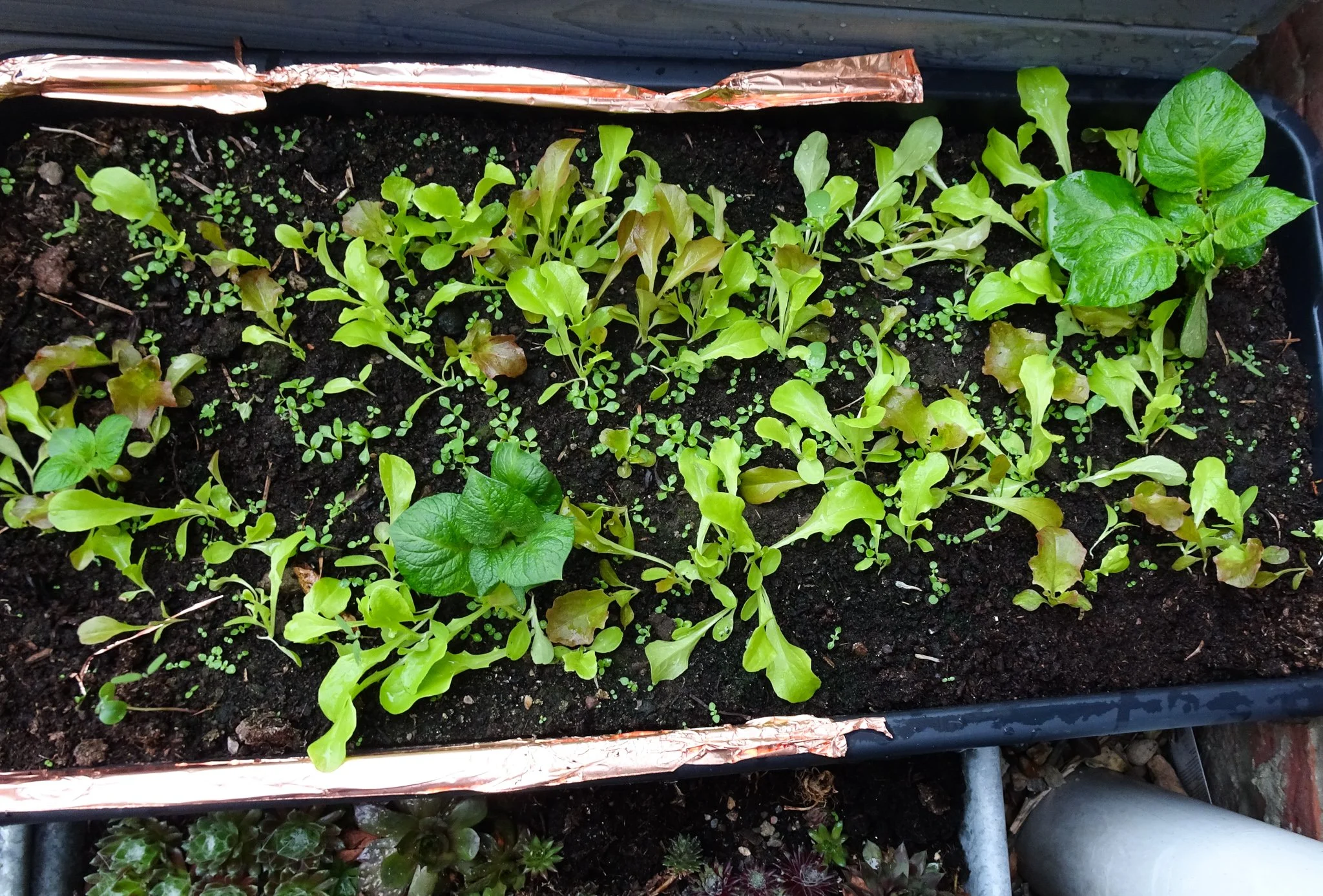 I had to go into work this morning so I didn’t get much done in the garden. I did pot up two of the cherry tomato plants and put them into the wee plastic growhouse and I sowed beetroot, nasturtiums and calendulas in the fabric troughs. There are non-salad seedlings amongst the lettuces I sowed in one of the troughs but at least the lettuces are coming on well.