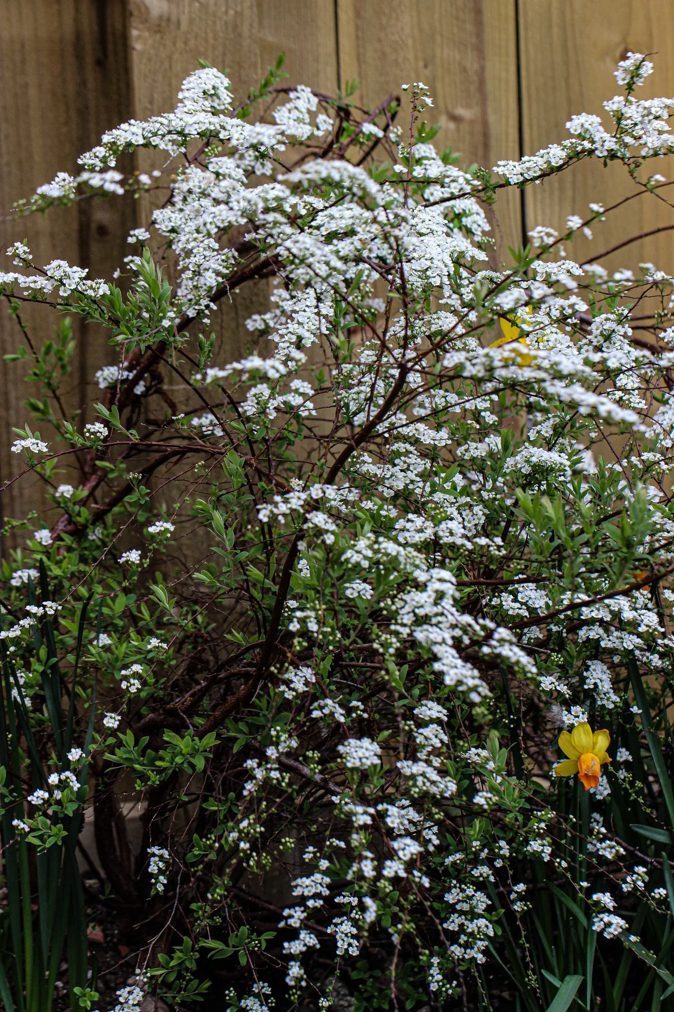 On the other side of the pond the spirea is beautiful & the broom is already yellow with potential.
