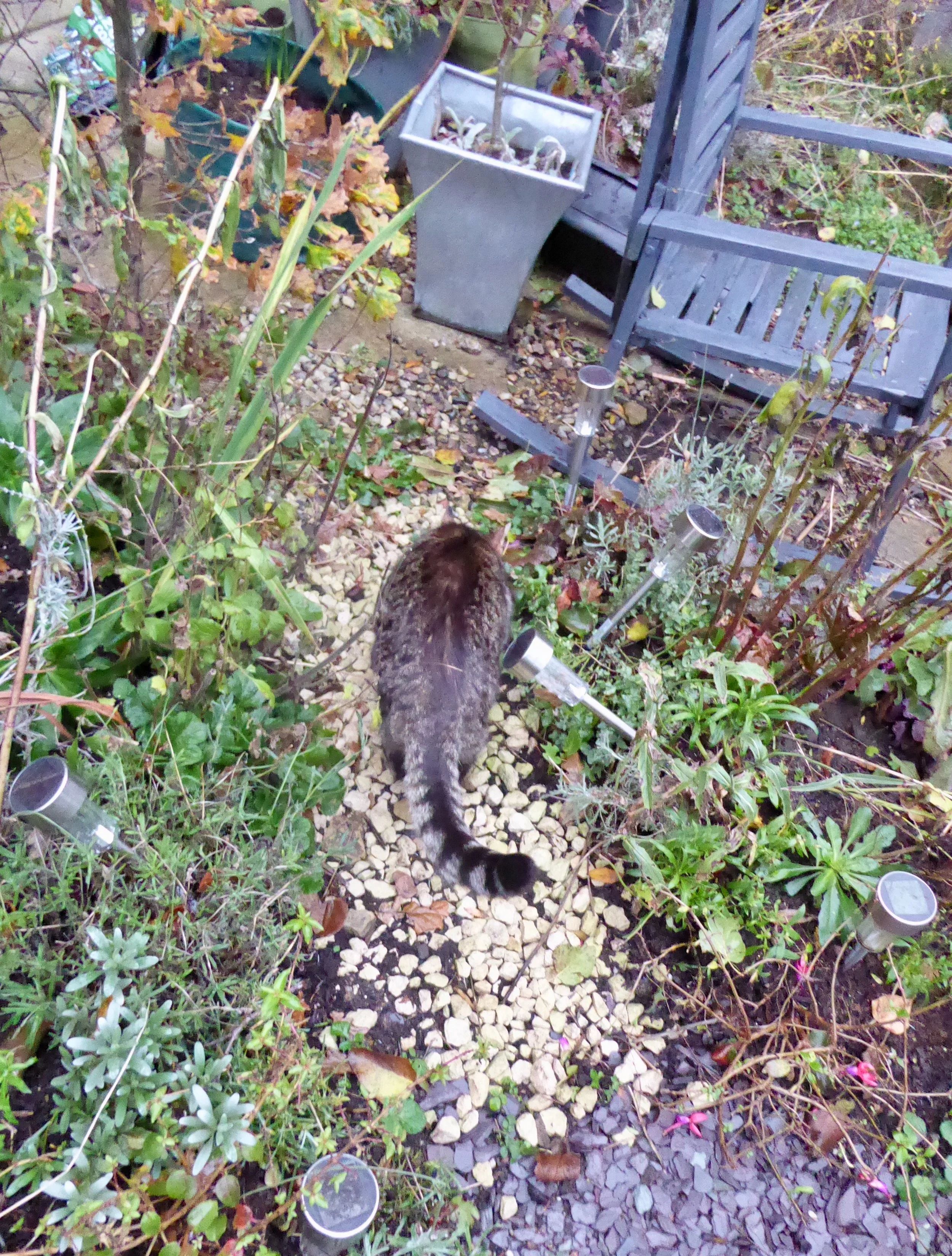 Its continuing to be rather wet and despite my best efforts the wet leaves are clogging up my front garden. Ben has been keeping an eye on the back garden and on his little catmint plant in the Magic Garden