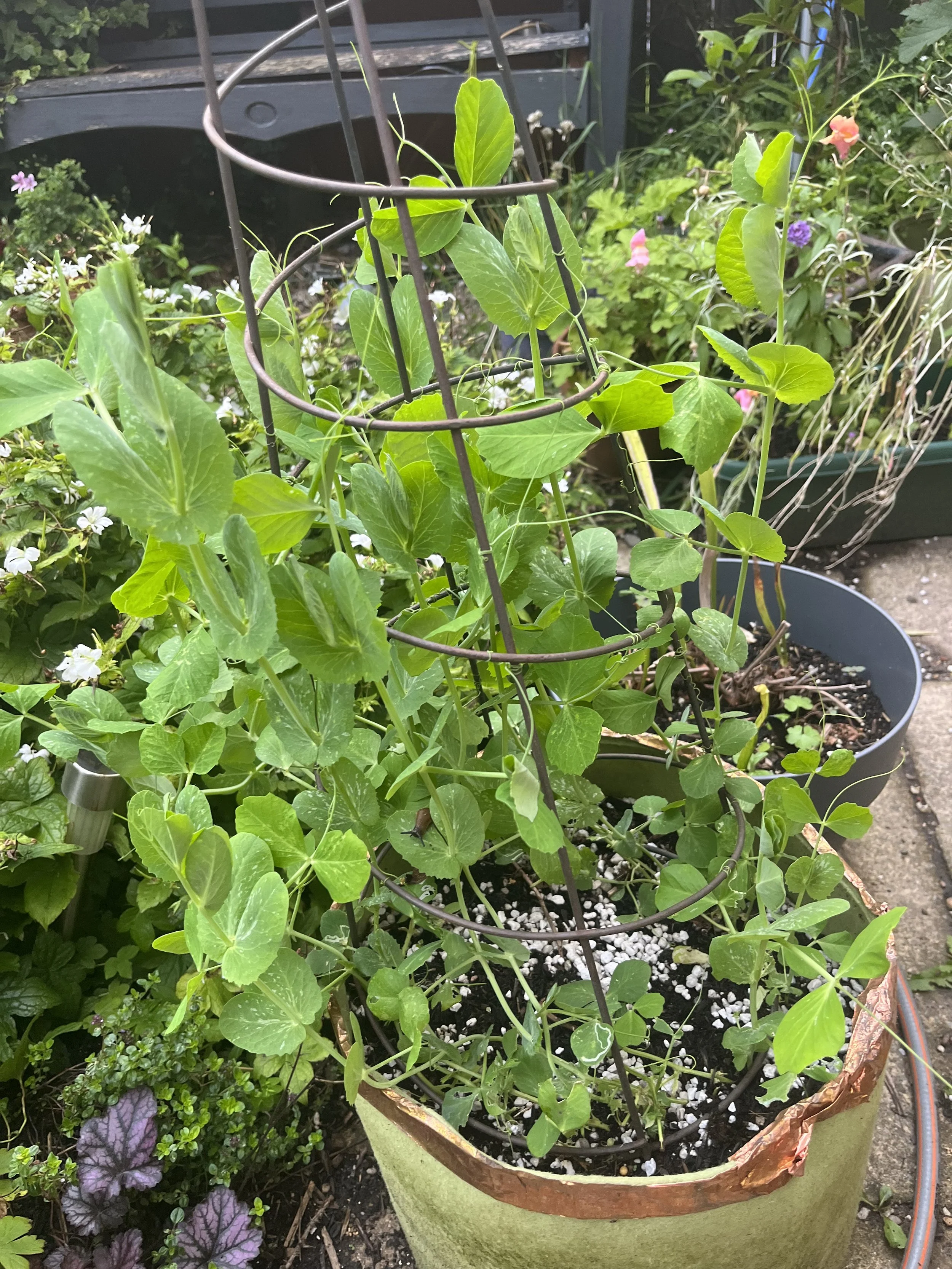 The courgettes are doing ok despite the coolness of the weather and I have hopes of a late pea crop